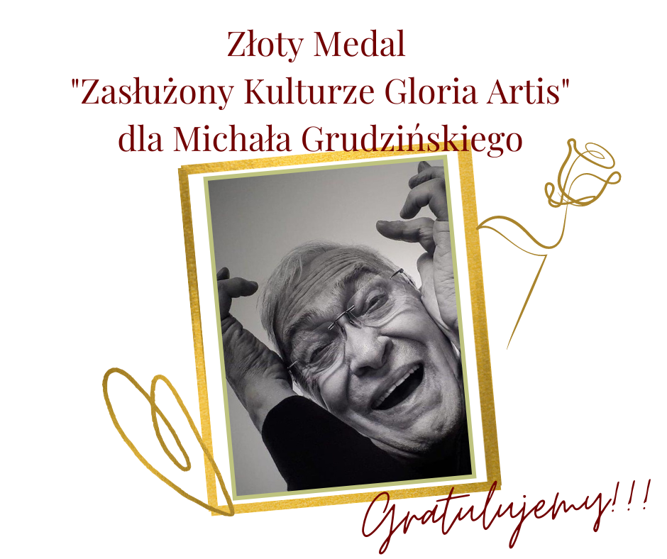 Z ogromną radością przyjęliśmy dzisiaj wiadomość o przyznaniu Złotego Medalu „Zasłużony Kulturze Gloria Artis” Michałowi Grudzińskiemu, aktorowi Teatru Nowego, członkowi ZASP. To wyjątkowe wyróżnienie będzie pięknym uwieńczeniem jubileuszu 50 lat pracy artystycznej pana Michała Grudzińskiego. Z całego serca gratulujemy!